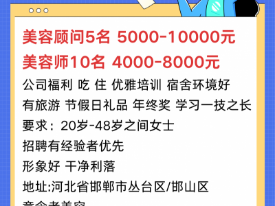 1.美容顾问5名5000-10000元